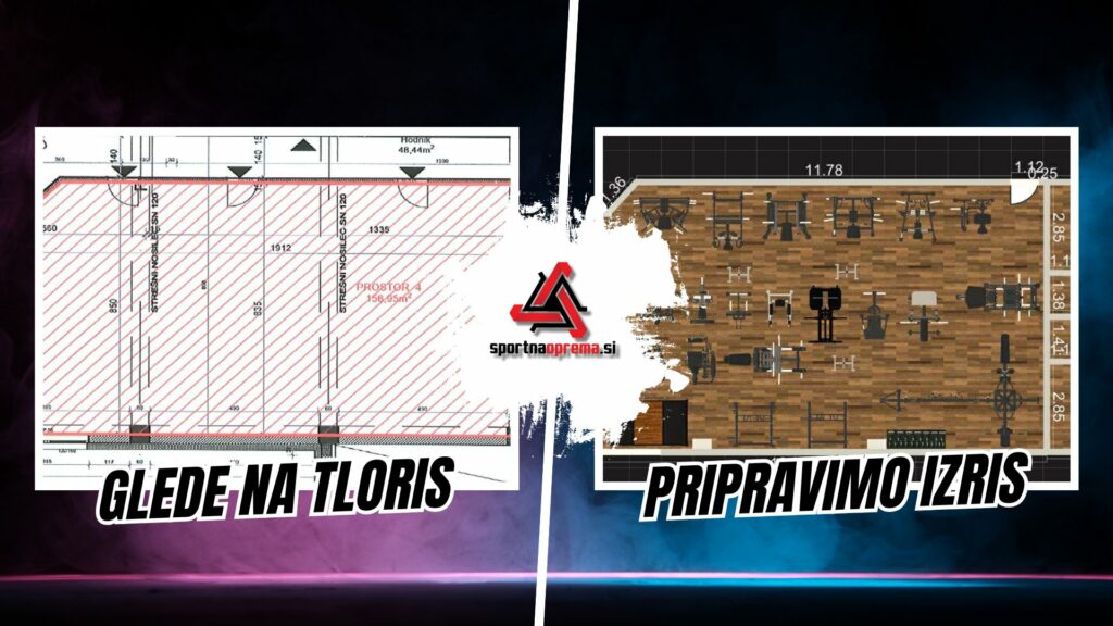Na podlagi teh izhodišč smo začeli risati prostor. Dobesedno – z uporabo arhitekturnih skic, CAD-razporeditev in notranjega ogleda. V ospredju sta bila dva ključna cilja: pretok gibanja med napravami in varnost pri vadbi.