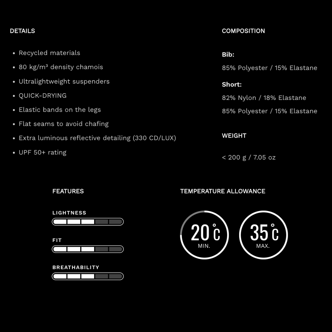 - 4-smerna raztegljiva tkanina: Omogoča popolno prileganje in svobodo gibanja, kar je ključnega pomena za udobno vožnjo.